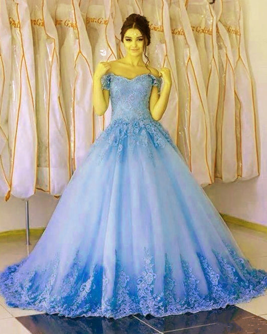 Tulle Ball Gown Off The Shoulder Quinceanera Dresses Lace Embroidery