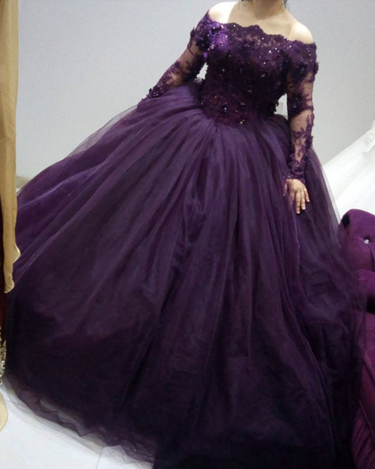 Long Sleeves Prom Ball Gown Off The Shoulder Dresses