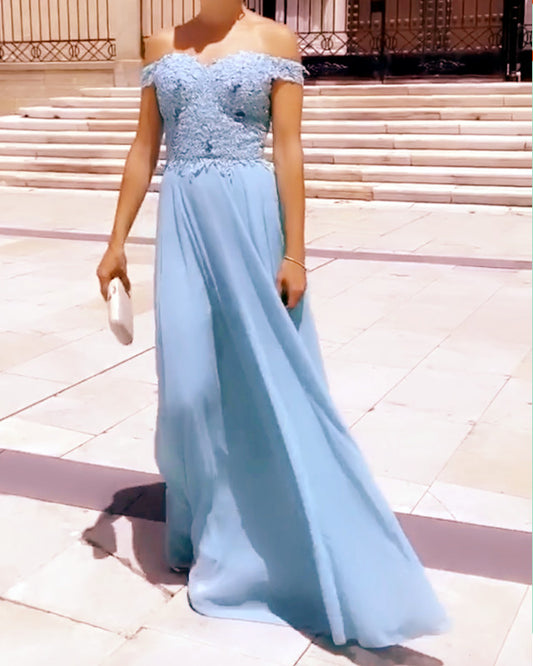 Lace Off Shoulder Prom Dresses Chiffon Long