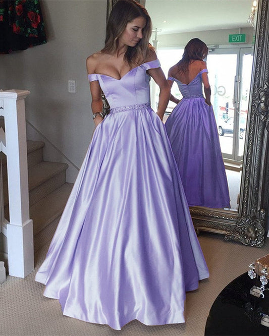 Ball Gown Prom Dresses Beaded Sashes Off The Shoulder