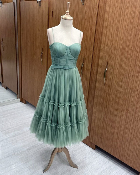 Sage Tulle V-neck Puffy Sleeve Cottagecore Dress
