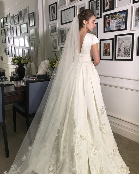 modest style wedding gown will always be a safe choice for your big day. Timeless elegance bridal dress with sleeves,coverage with your shoulder, not see through fabric