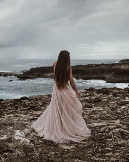 Beach Style Wedding Dresses Spaghetti Straps Tulle Backless
