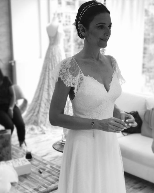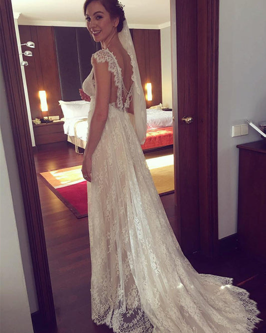 Modern Boho Wedding Dress Appliques Cap Sleeves