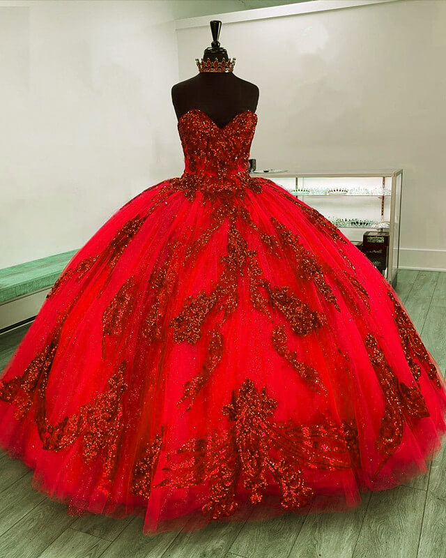 Red Sequin Embroidery Sweetheart Quinceanera Dresses