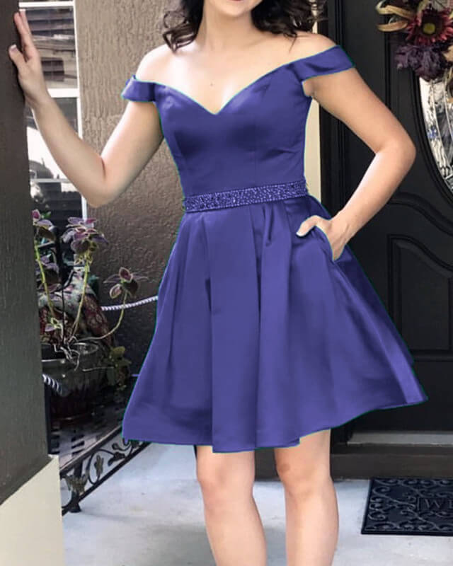 A Chic Satin Semi Formal Dresses Featuring a off-the-shoulder Neckline and Ruffles Hem. zipper back design.Perfect For Prom,Evening,Formal Wedding,Bridesmaid Or Any Other Special Occasions !