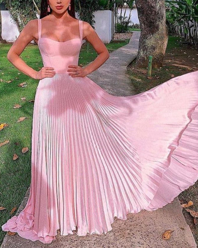 Spaghetti Straps Sweetheart Corset Pleated Skirt Bridesmaid Dresses