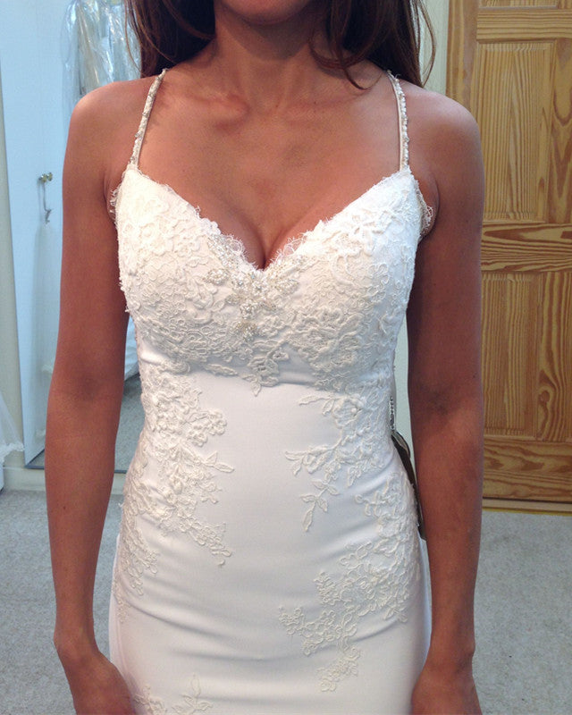 Mermaid V Neck Wedding Dress Appliques Spaghetti Straps