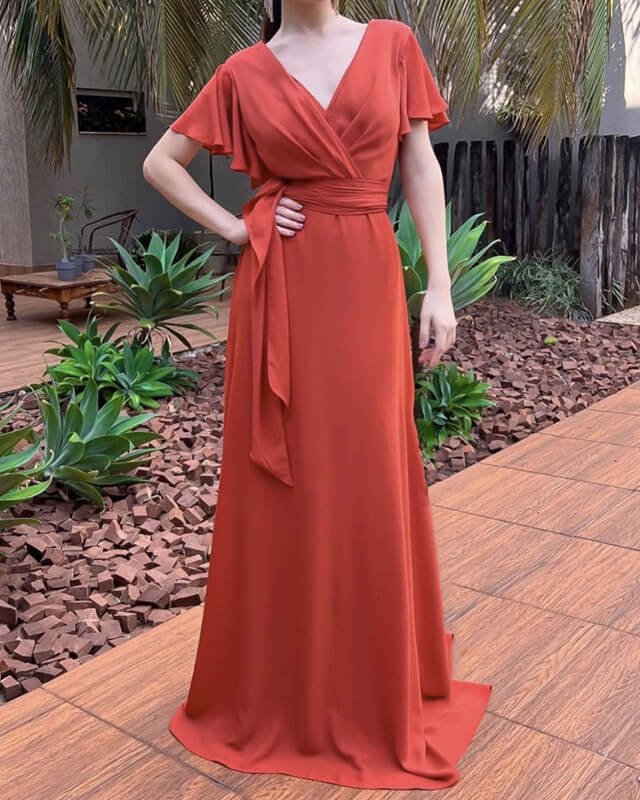 Terracotta Chiffon Bridesmaid Dresses With Sleeve